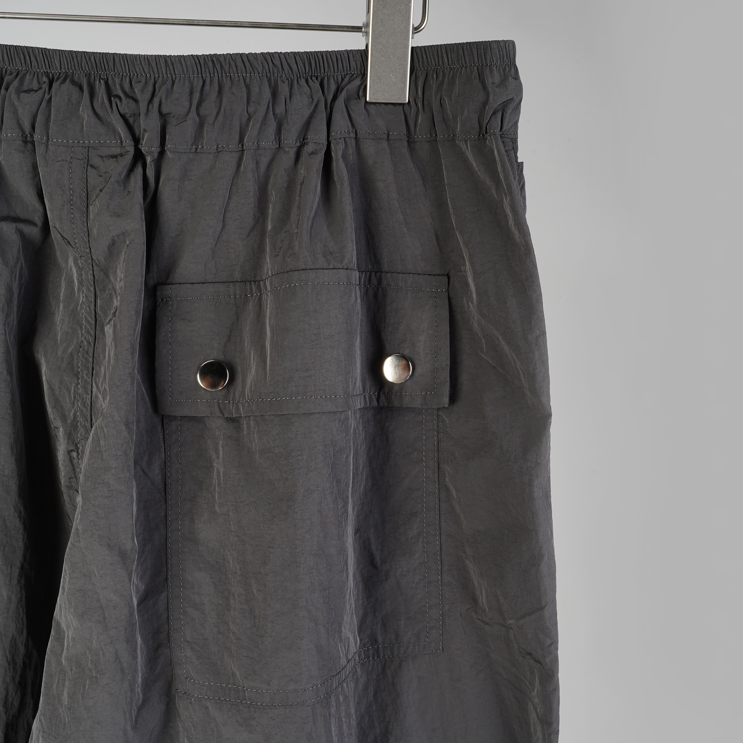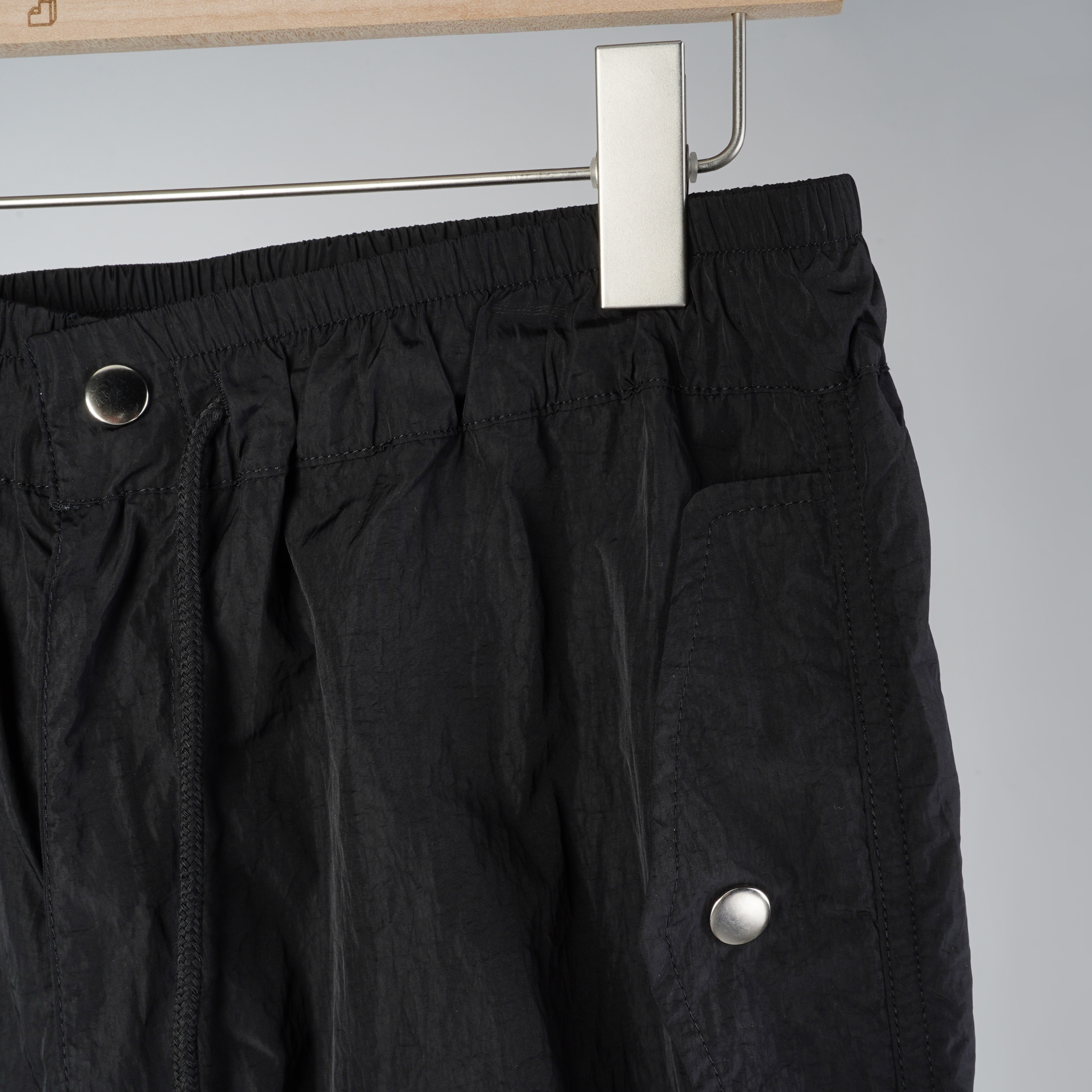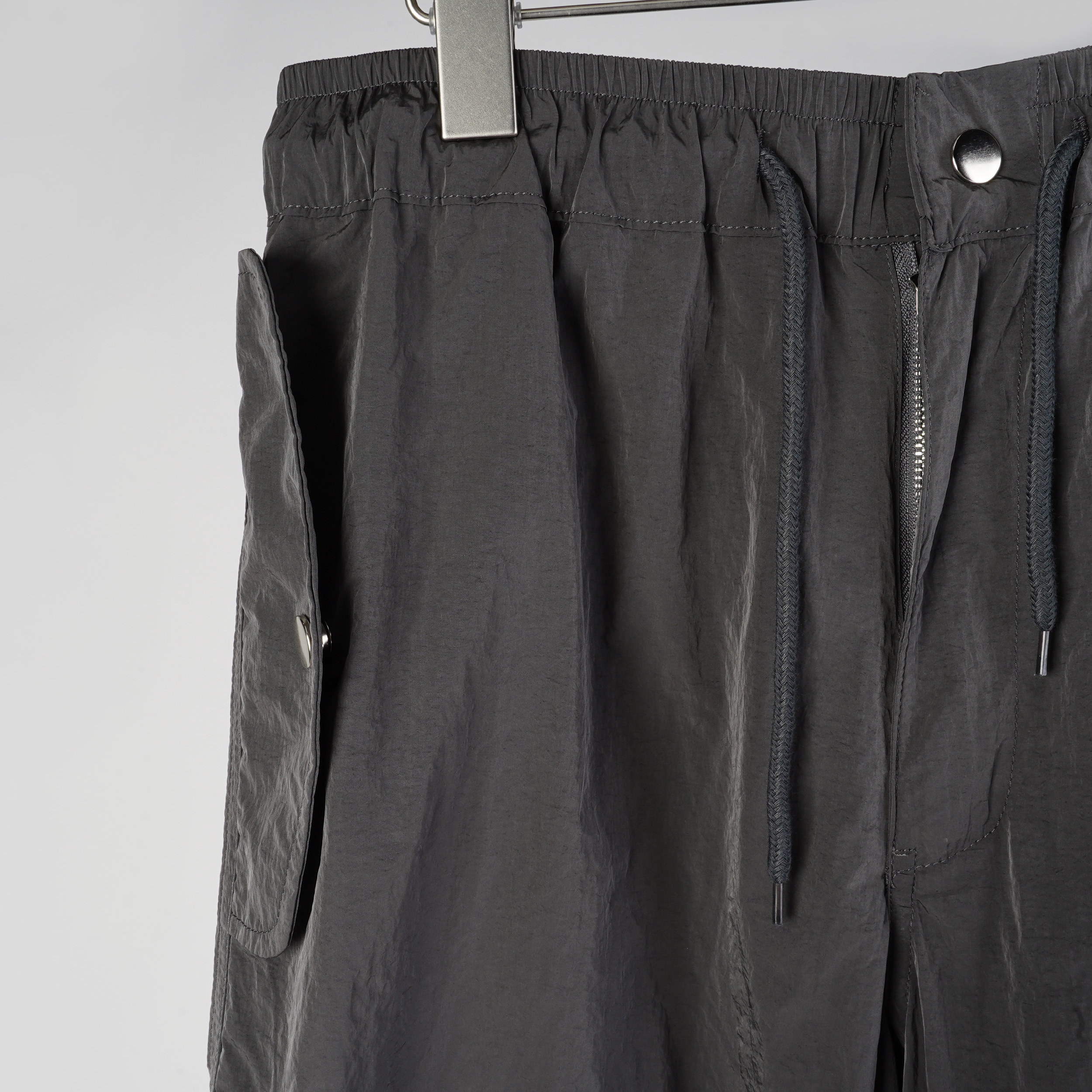 設計感抽繩壓釦工裝褲|顏色: 奶油灰 / 有點灰 / 就是黑|尺寸: FREE SIZE|MADE IN KOREA